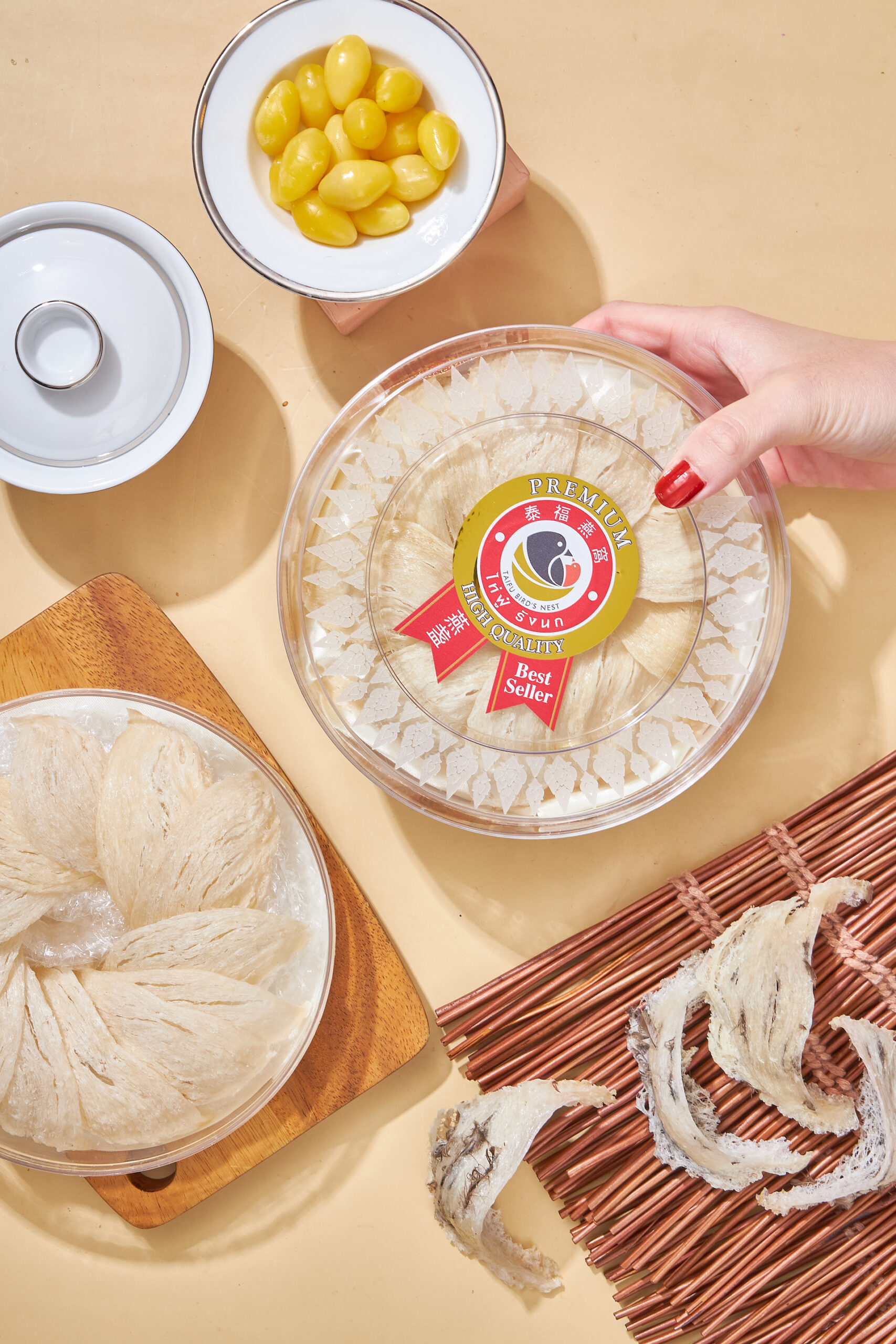 รังนกที่เก็บทำความสะอาดแล้ว 100% แค่ใส่น้ำร้อนแล้วอุ่นร้อนก็พร้อมรับประทาน