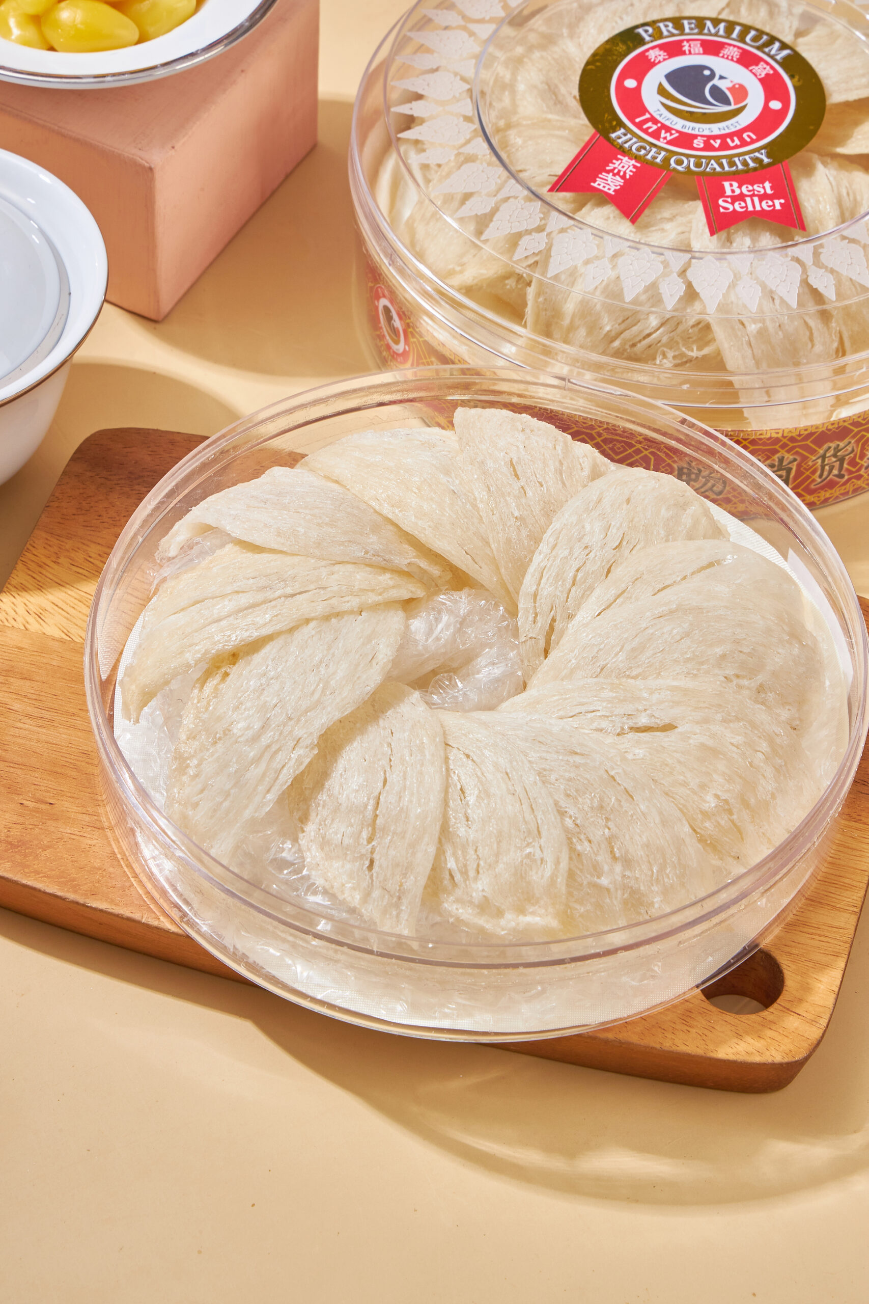 รังนกที่เก็บทำความสะอาดแล้ว 90% เกรดพรีเมี่ยม และนำขึ้นรูปแบบคงรังเดิม ทรงสวยงาม เนื้อแน่นเข้มข้น เนื้อรังนกเส้นเยอะและรังใหญ่ ตุ๋นง่าย เหมาะสำหรับเป็นของขวัญ